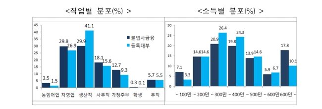 국민 100명중 1명은 불법사금융을 이용하고 있는 것으로 나타났다. 월소득 200~300만 원대이고 40~60대 남성이 주로 불법사금융을 이용했으며, 전체 이용자 가운데 1만여 명은 금리 66%를 넘어가는 초고금리에 고통 받고 있는 것으로 조사됐다.