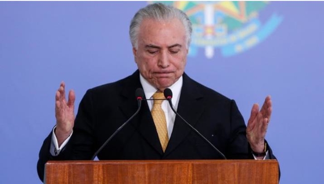 브라질 연방경찰은 지난 9월 테메르 대통령이 뇌물을 받은 것으로 보인다는 보고서를 연방대법원에 제출했다. 보고서에 따르면 테메르 대통령은 지난해 5월 항만산업 지원정책을 발표한 후 특정 업체들에게 특혜를 제공하는 대가로 부당이익을 챙겼다.