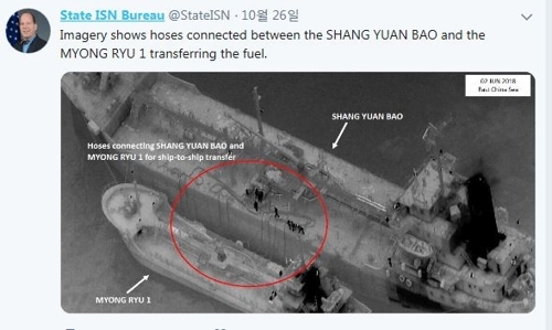 미국 국무부가 북한 선박들의 불법 유류 환적 현장 사진을 공개했다.