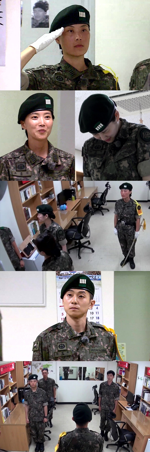 이날 공개된 사진에는 완벽한 ‘당직사관’으로 변신한 김재화와 안현수의 모습이 시선을 강탈한다. 이와 반대로 이들 앞에서 애써 웃음을 참으려 이를 악문 동기 사관생도들의 모습이 담겨 웃음을 유발한다.