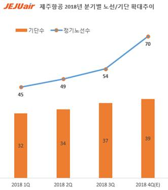 제주항공은 보유항공기를 1분기에 1대, 2분기에 2대, 3분기에 3대 등 총 6대의 항공기를 도입했다. 이와 함께 주요노선에 대한 증편과 함께 신규노선 개발 역시 공격적으로 늘리고 있다.