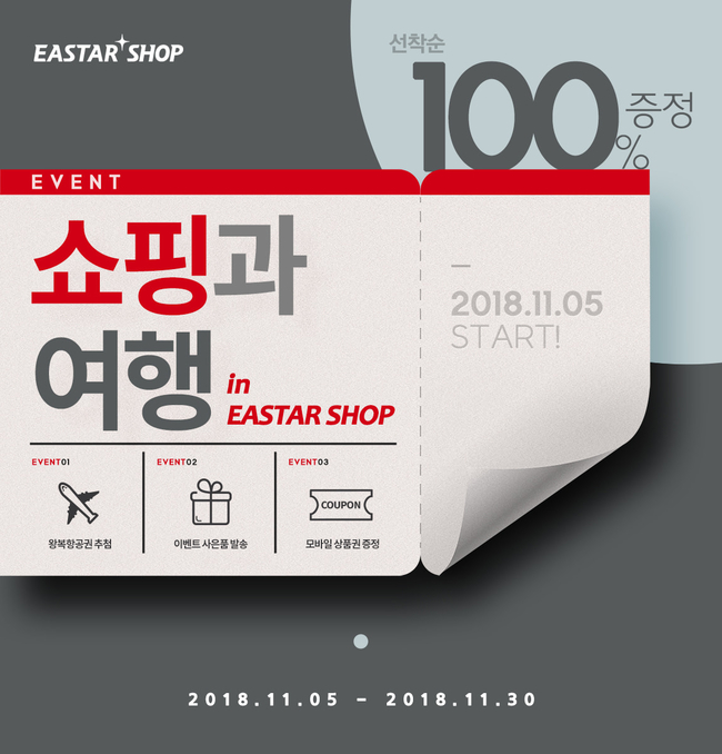 이스타항공, 이스타항공 로고샵 이벤트 진행 = 이스타항공은 공식 온라인 쇼핑몰 ‘이스타항공 로고샵’에서 다양한 증정 이벤트를 진행한다고 7일 밝혔다. 이스타항공 로고샵은 이스타항공 로고 상품 및 다양한 일반 상품을 구매할 수 있는 온라인 쇼핑몰로 지난 8월 첫 오픈했다. 이스타항공은 이달 이스타항공 로고샵에서 ‘이스타 타고’ 블록세트 구매한 고객들을 대상으로 이스타항공 국내선 왕복항공권 증정 이벤트를 진행한다. 이밖에도 이스타항공 로고상품 중 1개 이상 구매하시는 모든 고객 선착순 100명에게 비행기 캐릭터 마우스패드, 큐브 포스트잇, 스마트 밴드 등을 증정한다. 아울러 신규가입 회원들을 대상으로 로고상품을 제외한 일반상품을 1개 이상 구매하면 CU편의점 모바일상품권(3000원 상당)을 100% 증정하는 행사도 함께 진행한다. 이벤트 기간은 오는 30일까지다.