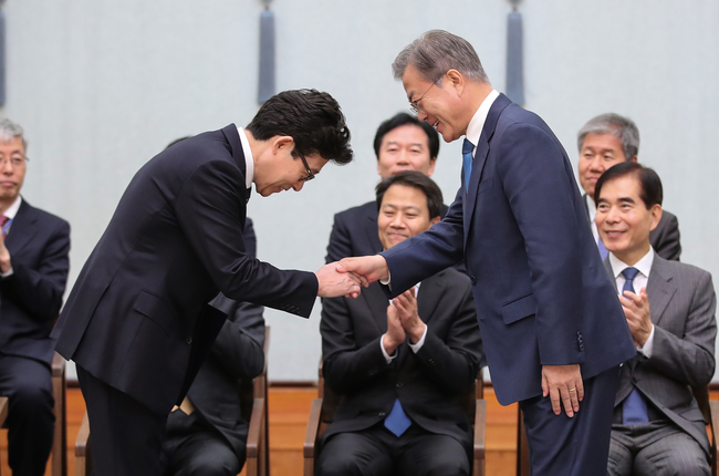 조 장관은 이날 오후 청와대에서 문재인 대통령으로부터 임명장을 받았다. 그는 문 대통령이 청문보고서 채택 없이 임명을 강행한 7번째 장관급 인사다.