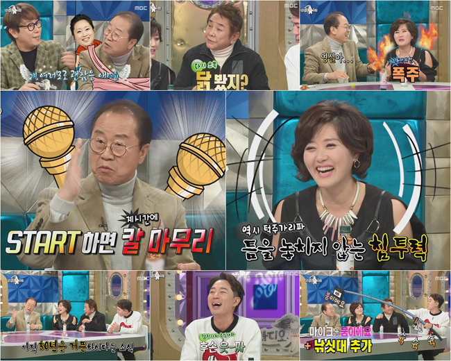 이날만큼은 천하의 김구라 마저 순한 양이 돼 있었다. 평소라면 공격을 했을 MC들이지만 이야기가 흥미진진할 뿐 아니라, 대선배님들 앞이라 잠자코 있을 수밖에 없었다. 결국 참다못한 김국진이 “제발 사연 말고 오프닝만 해 달라. 우리는 그냥 ‘몇 대 몇’과 같은 이런 추억을 듣고 싶은데 정작 그건 안 해줬다”고 현 MC의 울분을 터뜨려 시청자들을 폭소케 만들었다.
