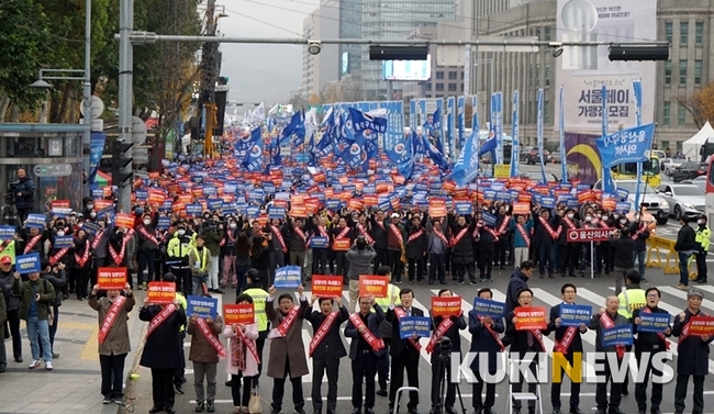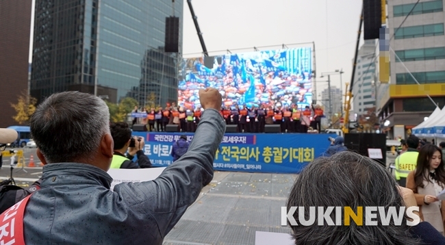 대한의사협회(회장 최대집, 이하 의협)를 주축으로 의사 1만여명(의협 추산 1만2000명, 경찰추산 6000명)은 11일 서울시청 맞은편 덕수궁 대한문 광장에 모여 오진의 멍에를 씌우고 형사적 책임을 묻는 사법부와 비정상적인 의료체계를 강요하는 정부를 향해 날을 세웠다.