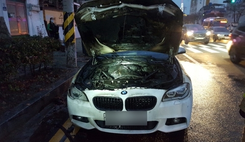 12일 오후 5시5분 경남 창원시 마산회원구 회원동 도로에서 A(30)씨가 몰던 BMW 530d 승용차에서 불이 났다.
