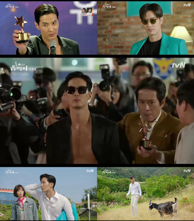 이어 그는 뒤쫓아온 경찰에게 5분만 기다려달라며 "별들의 잔치에 가장 빛나는 별이 빠지면 되겠습니까? 나, 톱스타 유백입니다"라며 경찰들을 황당하게 만들었다. 이후 시상식에서 건방진 소감을 전하고 경찰서에서 시종일관 당당한 자세로 일관, 그리고 집으로 돌아와 스피커에 "지금 대한민국에서 가장 핫한 스타가 누구지?"라고 말한 뒤 유백이라는 답을 듣자 "접수~"라며 자아도취 끝판왕의 면모를 유감없이 드러냈다.
