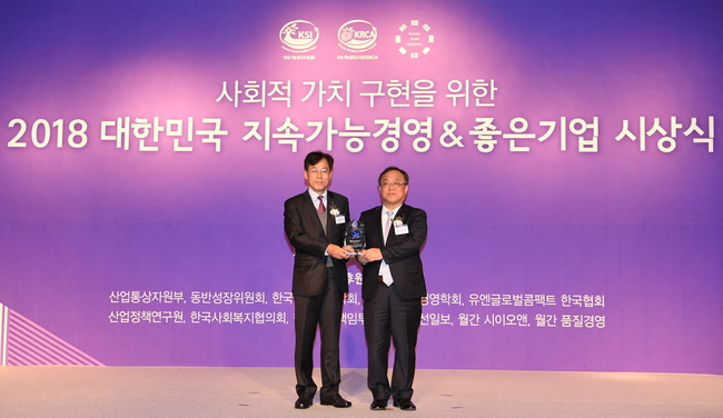 포스코건설이 22일 한국표준협회가 주관하는 대한민국지속가능성 대회에서 대한민국 지속가능성 지수(KSI) 건설분야 1위 기업으로 선정됐다.