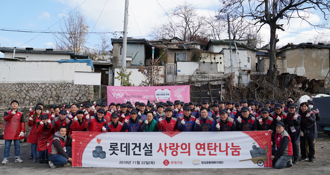롯데건설이 22일 서울시 노원구 중계본동의 104마을 이웃에게 사랑의 연탄 나눔 봉사활동을 진행했다.