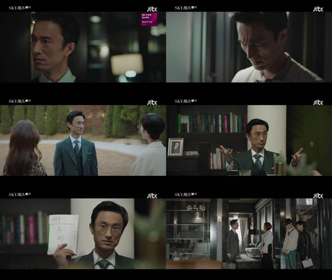 지난 ‘SKY 캐슬’ 3, 4화에서는 차민혁(김병철 분)이 주도하던 독서토론 모임이 이수임(이태란 분)의 등장으로 인해 와해되며 분노, 이후 아이들을 옥죄며 노승혜(윤세아 분)와도 대립하는 차민혁의 모습이 그려졌다.