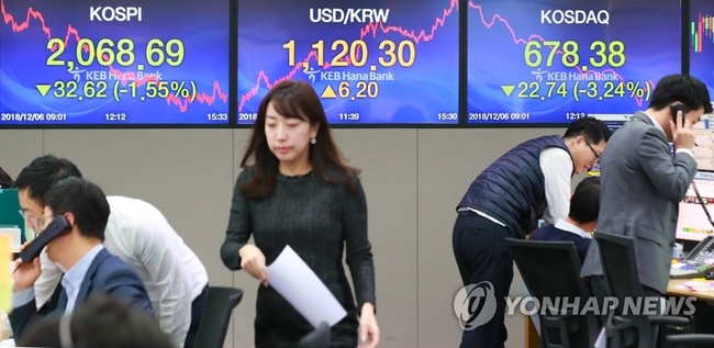 미 국채의 장단기 금리차 축소, 화웨이의 최고재무책임자(CFO)인 멍완저우(孟晩舟) 체포, 북한 미사일 기지 운영 의혹 등 여러 악재가 이날 코스피 하락을 부추겼다.