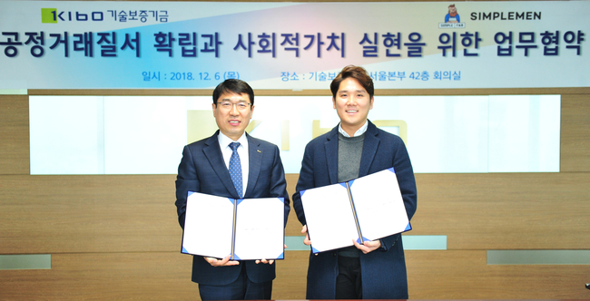 기술보증기금 서울지역본부는 6일 백채김치찌개 가맹본부인 ‘㈜심플맨 및 ㈜심플맨에프엔비’와 가맹사업의 공정거래 질서확립과 사회적 가치 실현을 위한 업무협약을 체결했다고 밝혔다.
