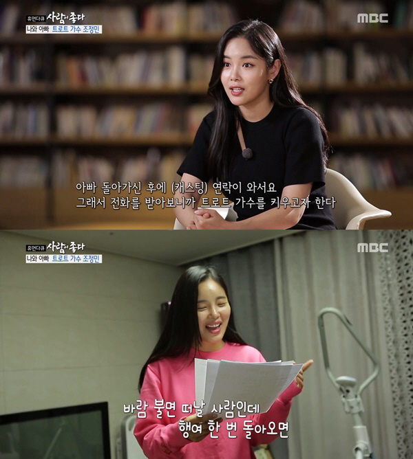 조정민은 “아빠가 돌아가신 후 캐스팅 연락이 왔다. 전화를 받으니 트로트가수를 키우려고 한다더라”고 당시를 회상했다.