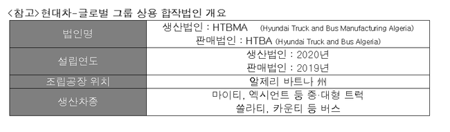 현대차와 글로벌 그룹은 신설되는 합작회사를 알제리 대표 상용차 기업으로 육성한다는 전략이다.
