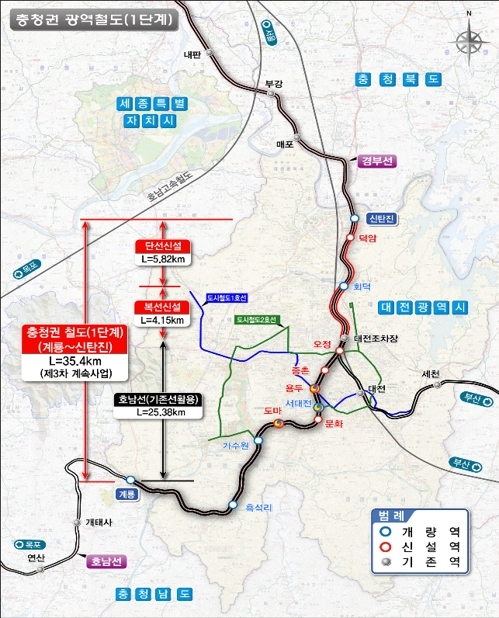 충청권 광역철도 1단계(계룡~신탄진) 건설사업이 본격화된다.