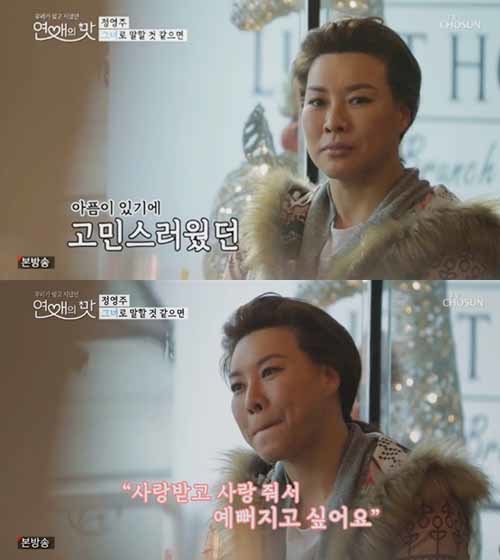 20일 방송된 TV조선 ‘연애의 맛’에 출연한 정영주는 6년 전 이혼의 아픔을 겪은 후 무대와 안방극장을 종횡무진하며 열정적인 활동을 펼쳤지만, 정작 연애에 있어서는 한없이 소심했던 무감정한 시기를 거쳤던 상황을 공개했다.