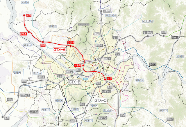 오는 27일 착공식을 통해 본격 공사가 시작되는 GTX A노선은 파주와 일산, 삼성, 동탄을 있는 80㎞ 구간으로 정거장은 10개다. 삼성~동탄 구간 37.3㎞는 수도권고속철도와 연계해 건설 중이다. 수익형민자사업(Build-Transfer-Operate, BTO) 방식으로 진행되며 사업비는 총 2조9017억원에 달한다.