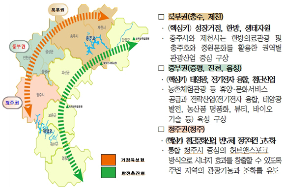 또한 고령친화, 기후환경, 관광스포츠, 첨단형 뿌리산업 등 미래유망산업 육성을 위한 산업기반시설(인프라)를 구축하고 도내 지역 간 연계를 강화해 지역개발 시너지도 높이기로 했다. 이와 함께 충주호 주변의 역사·문화 관광지를 연계하는 관광도로 등 기반시설을 구축해 관광·지역경제 활성화도 추진한다.
