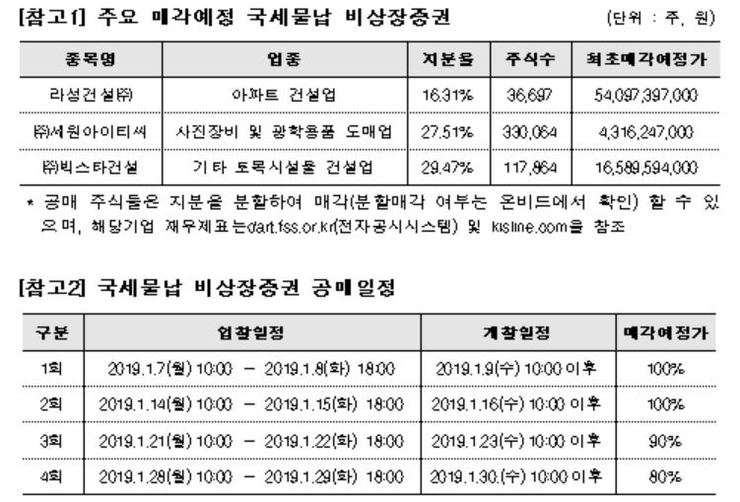캠코, 6295억 규모 국세물납 비상장증권 7일부터 공매