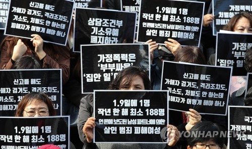 현재 경찰이 가정폭력신고를 받고 출동해도 폭행죄는 법정형이 2년 이하의 징역 또는 500만 원 이하의 벌금, 구류 또는 과료에 불과한 실정이다. 피의자의 범죄행위가 사형·무기 또는 장기 3년 이상의 징역이나 금고에 해당할 경우에 시행할 수 있는 긴급체포를 할 수 없어 돌아오는 경우가 빈번하다는 이야기다.
