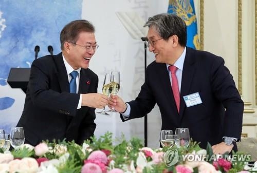 문 대통령은 8일 청와대 집무실에서 노영민 비서실장, 강기정 정무수석, 윤도한 국민소통수석 등 신임 참모진을 만난 자리에서 “비서실장도 경제계 인사를 만나는 게 해야 할 일”이라며 “과거처럼 음습하다면 모를까 지금 정부에서는 당당하고 투명하게 만나달라”고 말했다.