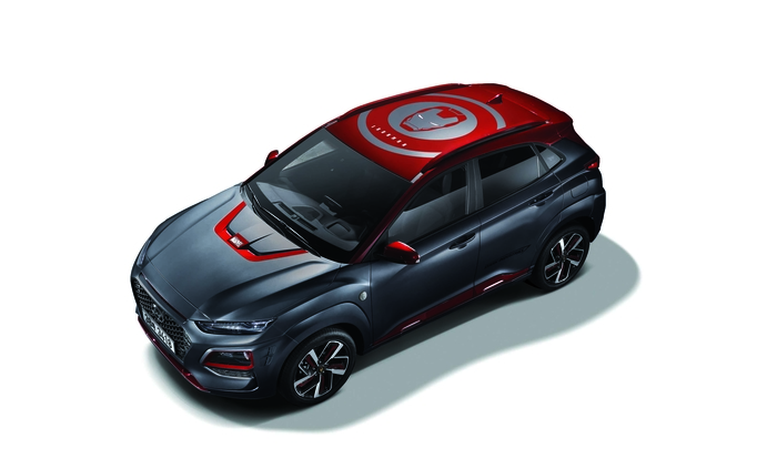 코나 아이언맨 에디션은 현대차가 글로벌 엔터테인먼트사 마블과 약 2년에 걸쳐 협업해 개발한 세계 최초 마블 캐릭터 적용 양산차다. 아이언맨 팬은 물론 보다 독특하고 강인한 느낌의 SUV를 원하는 고객 을 위해 제작됐다.