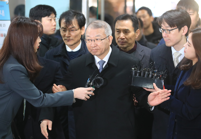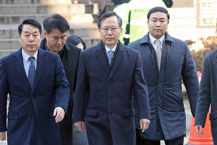 양 전 대법원장은 오전 10시25분 서울 서초구 서울중앙지법에 출석했다. 그는 취재진의 질문에 답하지 않고 굳은 얼굴로 포토라인을 지나쳤다. 함께 구속영장이 청구된 박병대 전 대법관(61·12기)은 10시20분 출석했으나, 그 역시 묵묵부답으로 일관했다. 박 전 대법관은 허경호(45·27기) 영장전담 부장판사 심리로 영장실질심사를 받는다.