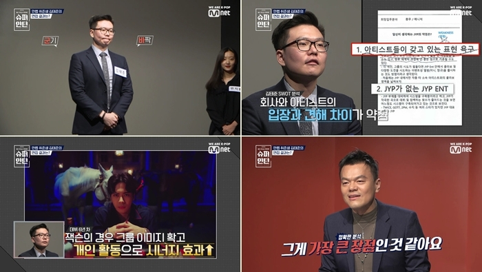 JYP엔터테인먼트(JYP)를 이끄는 가수 겸 프로듀서 박진영이 엉뚱하고 기발한 상상력을 가진 인재를 찾아 나섰다. 학벌이나 배경을 배제하고, 기발한 상상력에 중심을 둬 인재를 뽑는다. JYP 정직원을 꿈꾸는 구직자들의 인턴 체험기를 다룬 Mnet ‘슈퍼인턴’이 24일 첫 방송한다.