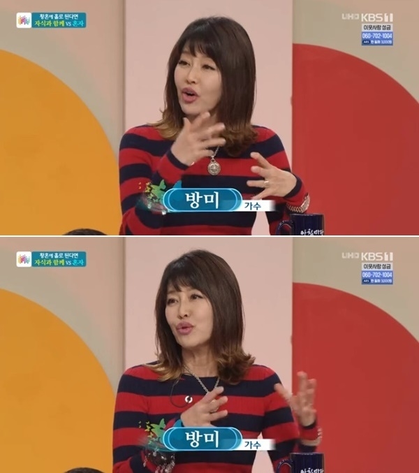 방미는 25일 오전 방송한 KBS1 ‘아침마당’에서 ‘황혼에 혼자가 된다면?’이란 주제로 이야기를 나누던 중 이렇게 고백했다. 이날 방송에는 전원주, 장미화, 강성범, 이만기도 함께 했다.