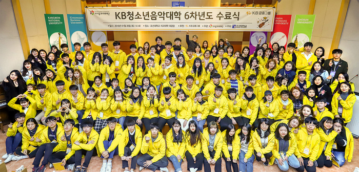 KB금융은 사회복지법인 아이들과미래재단과 지난 26일 조선대학교 치과대학 대강당에서 제6차 KB청소년음악대학 수료식을 개최했다고 밝혔다. KB청소년음악대학은 음악적 재능이 뛰어나지만 어려운 환경 속에서 배움의 기회가 더 필요한 청소년들에게 수준 높은 음악교육을 제공하는 사회공헌 활동이다.