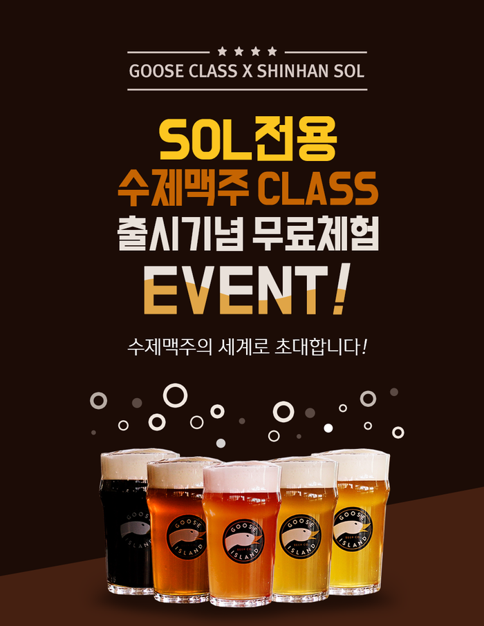 신한은행은 브루어리 펍(Brewery Pub) ‘구스아일랜드 브루하우스’와 제휴를 맺고 ‘쏠(SOL)’ 전용 크래프트 맥주 클래스 무료 체험 이벤트를 진행한다고 28일 밝혔다.