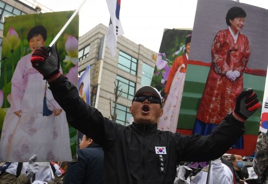 태극기와 성조기를 흔들며 “박근혜 대통령을 석방하라” 등의 구호를 외치기도 했다.