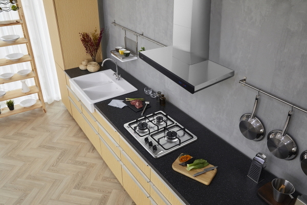 요리를 할 때마다 후드를 켜고 끄는 것이 번거롭다면 하츠의 ‘쿠킹존(Cooking Zone) 시스템’을 추천한다. 하츠의 데코 컬렉션 중 ‘아크(DAC-90SCI)’는 다양한 주방 인테리어에 어울리는 고급스러운 디자인의 주방용 레인지 후드로, 쿡탑을 켜면 자동으로 레인지 후드가 켜지는 쿠킹존 시스템과 터치식 스위치를 적용해 사용의 편의성을 극대화한 것이 특징이다.