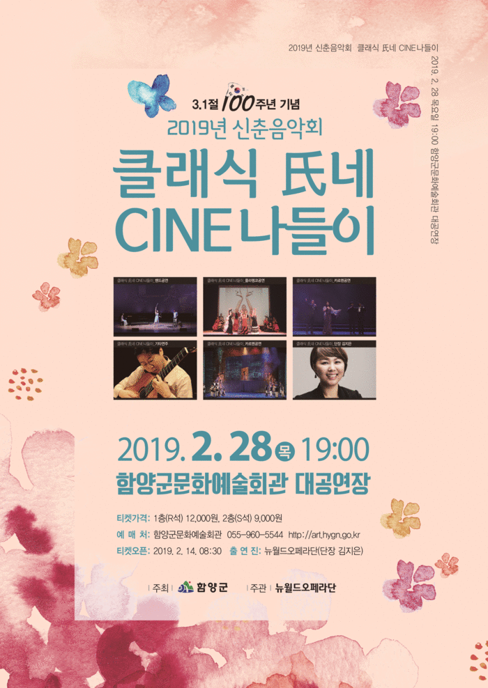 경남 함양군은 오는 28일 오후 7시 문화예술회관 대공연장에서 3‧1절 100주년 기념 신춘음악회를 연다고 밝혔다.