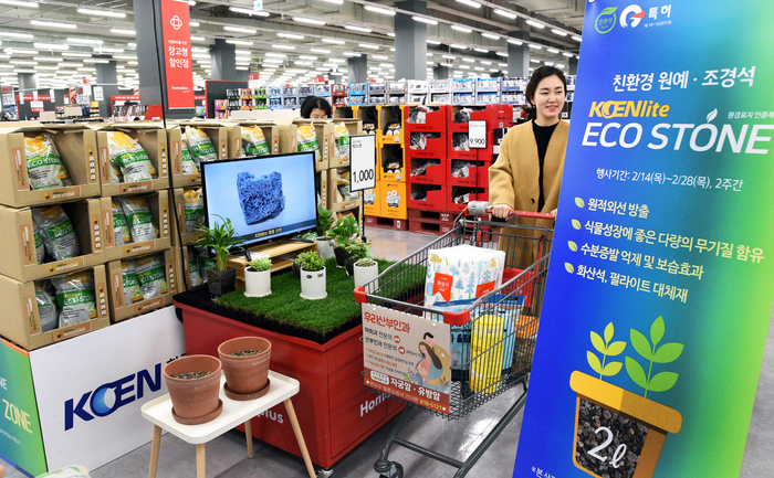 이번 협약에 따라 홈플러스는 화력발전소에서 석탄 연소 과정에서 발생되는 운영 부산물인 석탄회를 재활용해 만든 친환경 원예·조경석 에코스톤을 1000원에 판매한다.
