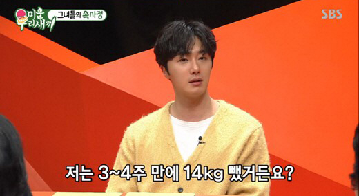 이 모습을 보던 스튜디오의 정일우는 “저도 군복무 하는 동안 14kg가 쪘었다”며 “저의 다이어트 성공 공식은 입금전후다. 작품이 결정되면 배역에 맞는 몸을 만들기 위해 관리를 시작한다. 3~4주 만이 14kg를 뺐다”고 말해 놀라움을 안겼다.