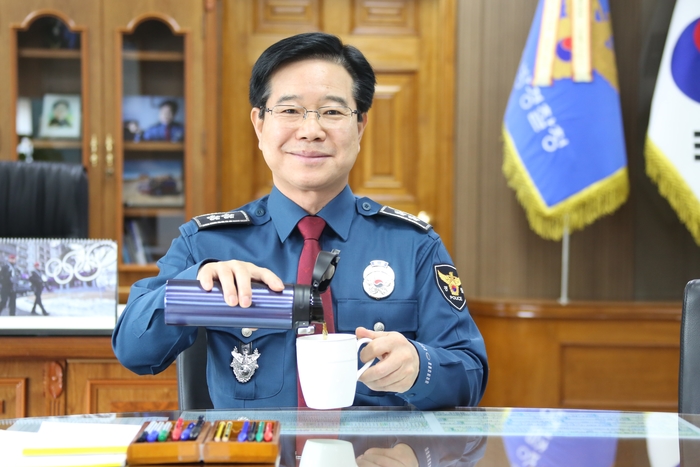 김창룡 경남경찰청장도 20일 플라스틱 컵 대신 머그컵이나 텀블러를 사용하며 일회용품 사용을 자제하는 ‘플라스틱 프리 챌린지’ 릴레이 캠페인에 동참했다.