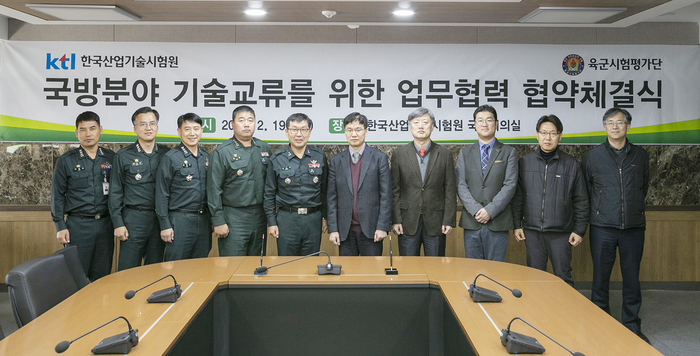 ![한국산업기술시험원(KTL)과 육군 시험평가단이 20일 국내 개발 무기체계와 전력지원체계 품질확보 등을 위해 업무협약을 체결했다. [사진= 한국산업기술시험원]](/data/kuk/image/20190208/art_1550648189.jpg)