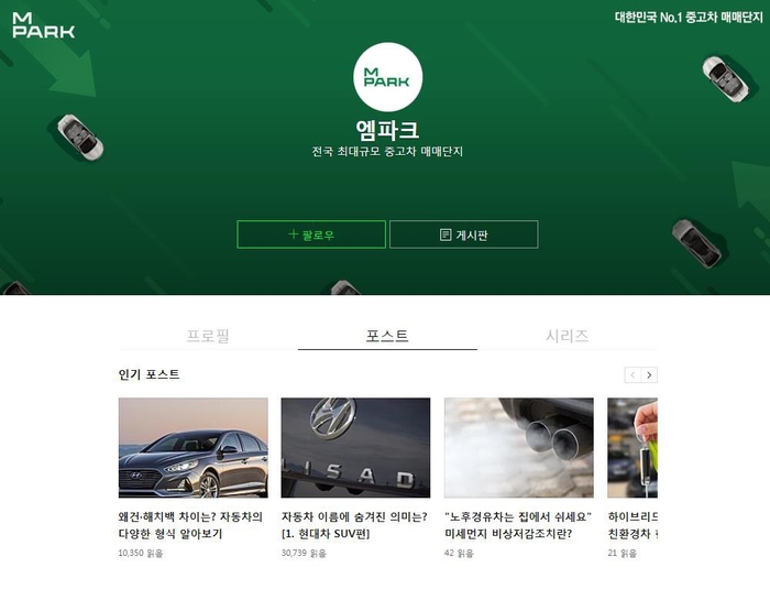 국내 최초 기업형 중고차 매매단지를 운영 중인 엠파크가 '네이버 포스트'를 오픈하며 고객 소통 확대에 나섰다.