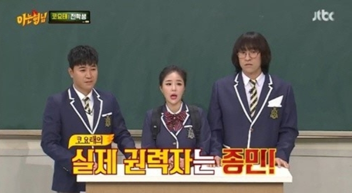 23일 오후 방송된 JTBC 예능프로그램 '아는 형님'에는 코요태 멤버들이 전학생으로 출연했다.