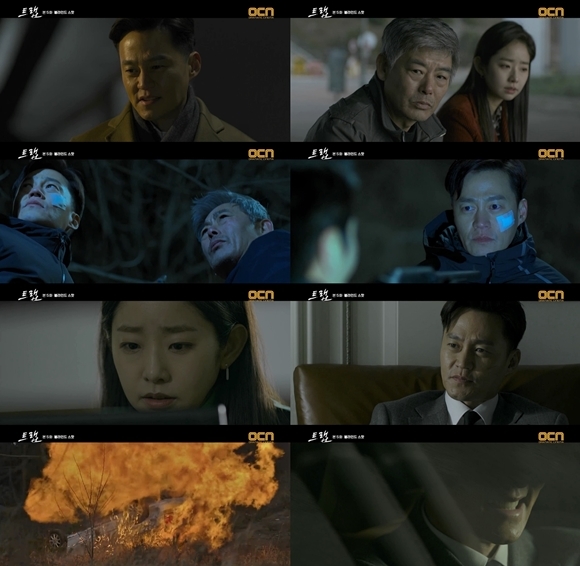 지난 23일 방송된 OCN 드라마틱 시네마 ‘트랩’(연출 박신우, 극본 남상욱, 총 7부작) 제5화 ‘블라인드 스팟(Blind Spot)’에서 자신들을 공격한 사냥꾼2(성혁)의 DNA와 CCTV를 확보한 고동국(성동일)과 윤서영(임화영). 증거를 남겨놓은 상황이 오히려 수상쩍었다. 그 가운데, 우현은 동국과 서영에게 과거사를 털어놓으며 세 사람은 전보다 가까워졌다. 과거 기자였던 김시현(이주빈)을 비롯한 탐사보도팀 후배 기자들이 홍원태(오륭) 대표의 연쇄살인을 인지하고 우현에게 도움을 청했다는 것. 증거를 찾기 위해 홍대표를 미행하던 서기자(동현배)는 “넌 좀 고통스럽게 죽여야겠어”라는 홍대표의 목소리를 녹음했지만, 당시 “그들이 가져온 자료로는 그놈들을 이길 수 없다고 판단”했던 우현은 후배들을 잃었다.