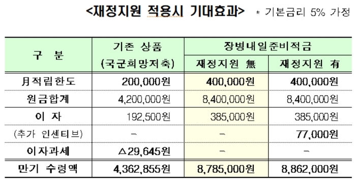 가입대상은 현역병·상근예비역·(해양)의무경찰·의무소방대원·사회복무요원 등으로 복무기간 동안 은행별 20만원, 병사 개인별 40만원까지 가입이 가능하다.