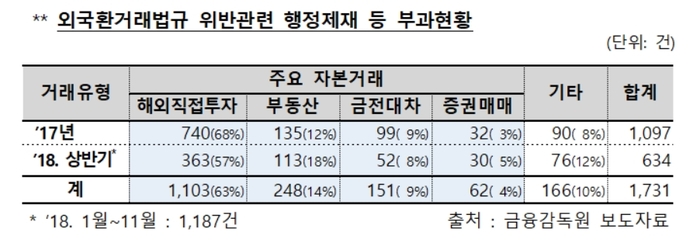 은행연합회가 외환거래에 대한 고객 안내를 강화한 것은 최근 3년간 외환거래법규 위반 건수가 크게 증가했기 때문이다. 금감원에 따르면 외환거래법규 위반 건수는 2016년 567건에서 2017년 1000건을 넘어선 이래 올해 11월까지 1187건을 기록 중이다.