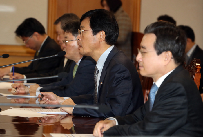 정부는 4일 서울 명동 은행회관에서 이호승 기획재정부 1차관 주재로 거시경제금융점검회의를 열고 이같이 진단했다. 이날 회의에는 김용범 금융위원회 부위원장, 유광열 금융감독원 수석부원장, 윤면식 한국은행 부총재, 정규돈 국제금융센터장이 참석했다.