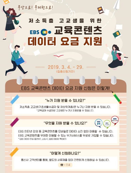 저소득층 고교생이 통신 3사의 EBS 교육콘텐츠 무제한 이용 부가서비스를 무상으로 이용할 수 있도록, 해당 부가서비스 이용 요금을 지원할 예정이다. 지원 대상 부가서비스는 SK텔레콤 EBS 데이터팩, KT와 LG유플러스 EBS 데이터 안심옵션이다.