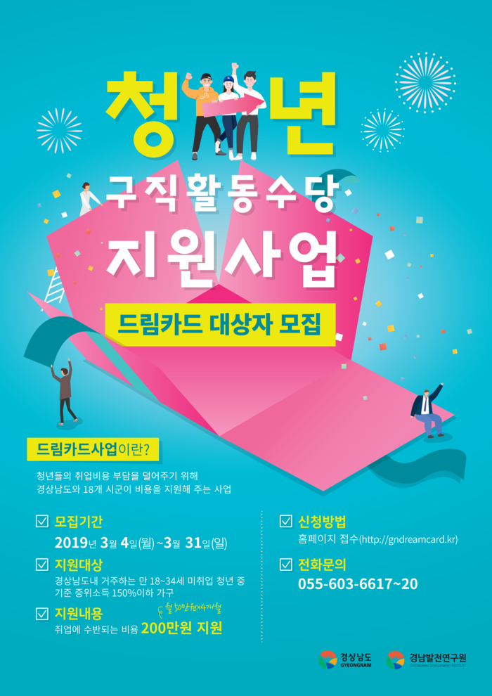 경남 거제시는 미취업 청년들의 구직활동을 지원하기 위해 경남도와 함께 ‘청년 구직활동수당 지원사업(드림카드)’을 시행한다고 4일 밝혔다.