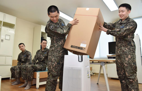 국방부는 미세먼지로부터 장병들의 건강을 보호하고 전투력을 향상시키기 위해 지난 8일부터 병영생활관 내 공기청정기를 보급하기 시작했다고 밝혔다.
