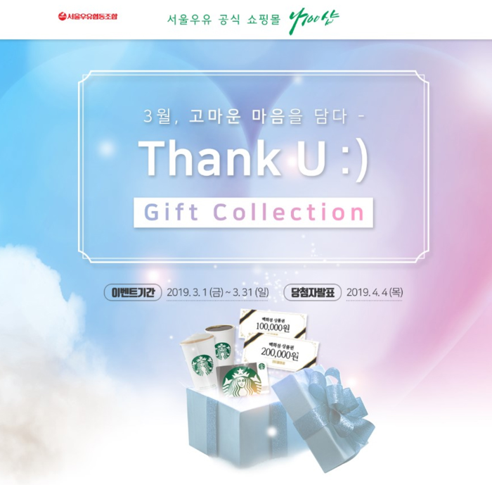 서울우유협동조합, ‘3월 특가왔나봄’ 이벤트 진행=서울우유가 공식 쇼핑몰 ‘나100샵’에서 특가 이벤트를 진행한다. 매주 월요일, 목요일에 진행되는 특가 상품으로는 서울우유협동조합의 인기제품인 초코멸균우유를 비롯해 딸기꿀딴지, 원두밀, 스페셜티 마일드, 아침에주스 골든사과 등 매일 다른 카테고리의 다양한 제품을 최대 67% 할인된 가격으로 만나볼 수 있다. ‘구매후기 작성 이벤트’도 함께 진행한다. 제품 구매 후기를 남기는 회원에게는 스타벅스 컵 커피 라떼 기프티콘(1000개 한정)을, 최다 후기 작성자 3명에게는 필립스 에어프라이어를 증정한다. 더불어 누적 결제액 7만원 이상, 15만원 이상 고객에게는 각각 스타벅스 기프트 카드 5천원권과 1만원권을 증정하고, 누적 구매금액 상위자 7명에 대해서는 백화점 상품권 등 푸짐한 경품도 시상한다.