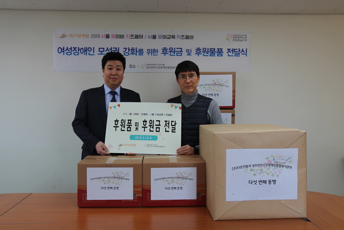 전시 전문기업 (주)다온전람(대표 이경섭)은 여성 장애인 모성권 강화를 위해 지난 13일 성프란치스꼬장애인종합복지관에 성금과 유모차, 기저귀 등 유아용품을 전달했다.