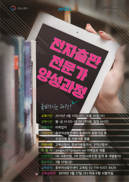 오는 3월 27일에는 마포구청 4층 시청각실에서 전자출판 전문가 양성과정에 대한 궁금증을 해소할 수 있는 교육설명회가 개최될 예정이다.
